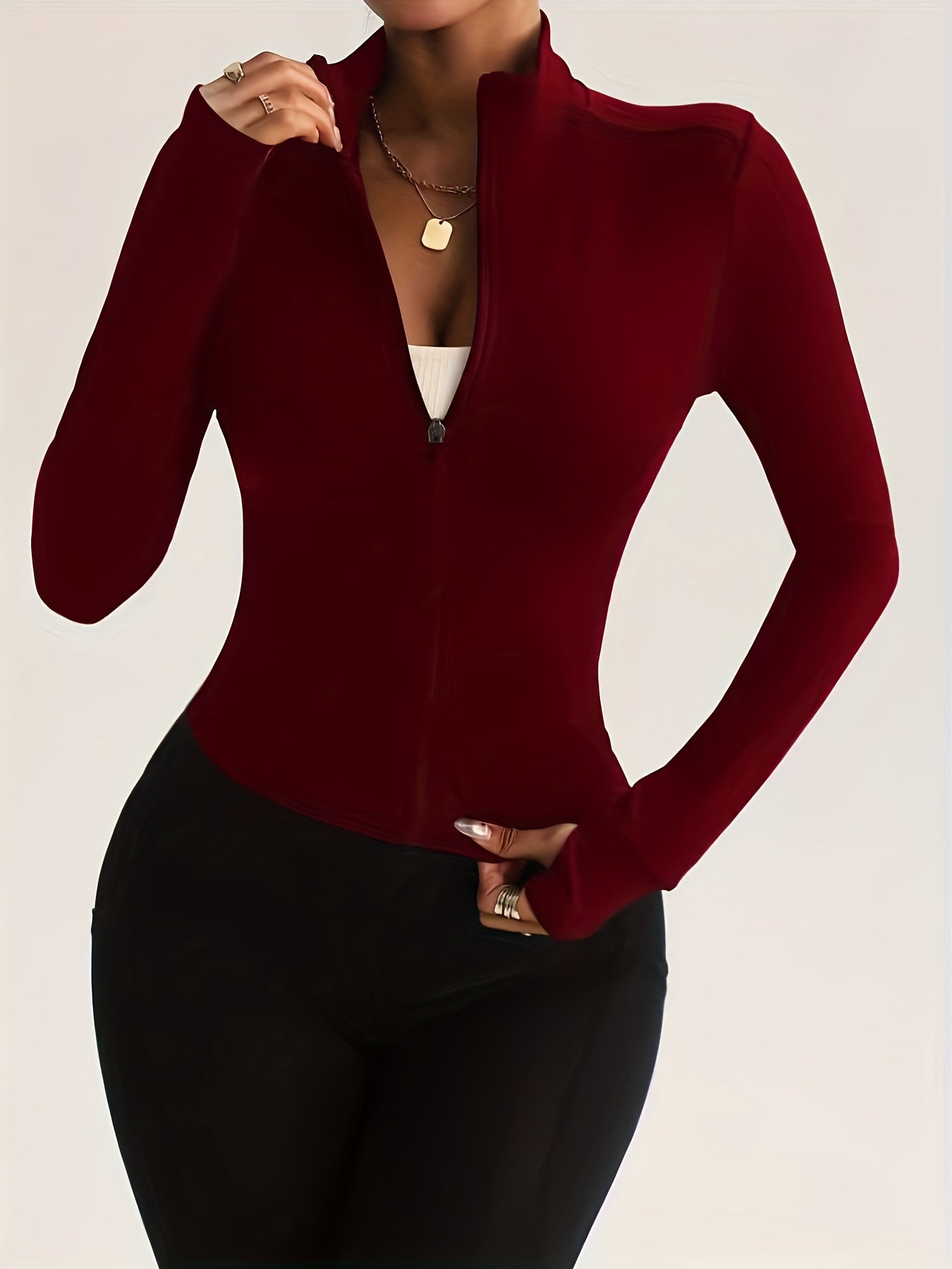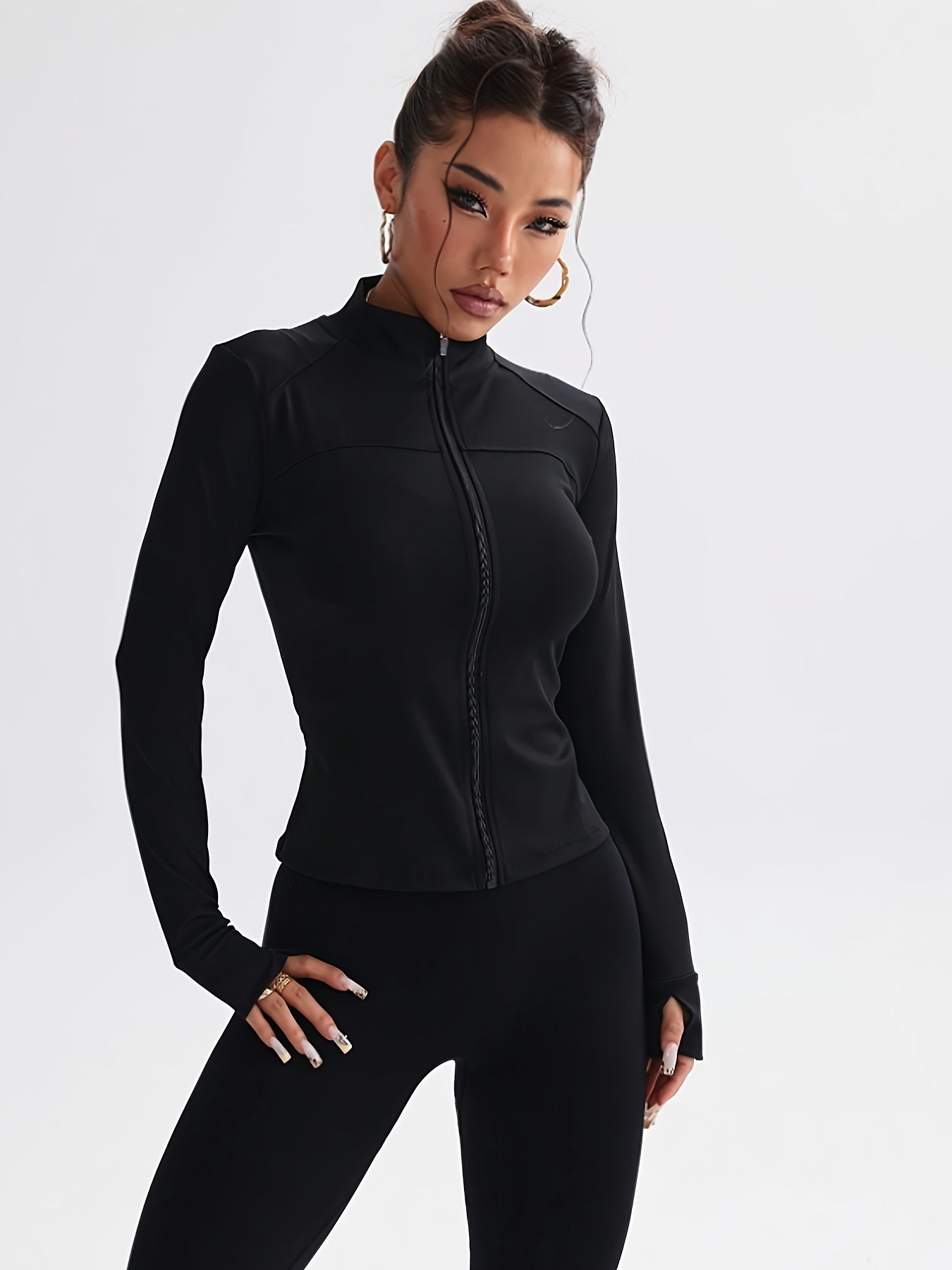 Este conjunto combina funcionalidad y estilo: mangas largas ajustadas para mayor confort, cierre con cremallera para facilidad al vestir y un corte que se adapta a tu figura. Ideal para yoga, running, gimnasio o para llevar en la calle con un estilo deportivo y minimalista.